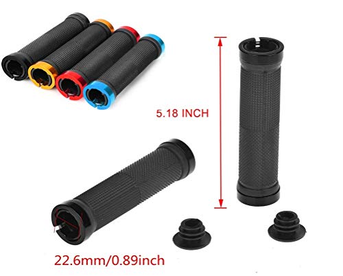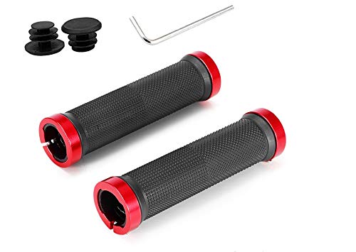 Details: Bicycle handle anti-skid aluminum alloy handlebar anti-skid handle, with aluminum handle end plug and a hexagon wrench, suitable for scooter cruiser tricycle wheelchair mountain city foldable bicycle MTB BMX Suitable size: Suitable for bicycle handlebars with an outer diameter of 22 to 23 mm, suitable for any standard mountain bike, electric bike, road bike, folding bike, etc. Reliable materials: The handlebar cover is made of rubber, sponge and aluminum, which is durable and stable in quality. Due to the use of high-quality rubber materials, the handle has a non-slip and comfortable feeling. Anti-slip design: The handle of the handlebar is covered with many small convex non-slip rubber particles, which are not easy to slide whether it is rain or sweat, which greatly improves the riding safety, and the "L"-shaped screwdriver is attached for easy installation. Applies to models: Our bicycle grips with aluminum locks are suitable for self-propelled models such as scooters, cruisers, tricycles, wheelchairs, mountain city foldable bicycles, MTB, BMX, etc. specification: Hexagon wrench size: 13.2 x 3.3 x 3.3 cm / 5.2 x 1.3 x 1.3 inches Color: as shown The package includes: 2 x handle clip 1 x hex wrench