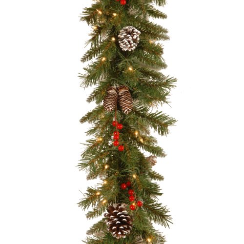 Details: This Christmas garland is trimmed with flocked pine cones and red berries with pre-strung 100 UL listed white lights. Display the colorful decoration over doors, windows, as a fireplace and stairway railing garland or in any indoor and covered outdoor locations. A great choice as a housewarming gift for friends and family on Christmas, fall, winter, and festivals.