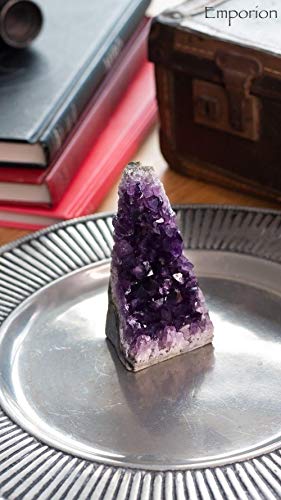 Details: 🔮 EMPORION Gems🔮, Natural amethyst cluster specimen, Deep Purple Quartz, mined from the heart of 🇺🇾 Uruguay, This gemstone's color ranges from a light lavender-pink to a deep purple, each is unique, it will vary in color , size and shape. A great addition to your crystal collection. Amethyst represents the "love of the guardian of stone",Between couples, it represents deep love, chastity, honesty and courage. Specimen blocks create a force field to strengthen one's aura while protecting from negative energies. HEALING ENERGY: Helps Sleep. Excellent Reiki for Chakra cleaning, Reiki healing, Crystal Grids. Transformation and Wisdom stone, helps to release Stress and fear. Elevates Spirits and Promotes Spirituality. Helps controlling vices and bad habits. Healing Power, especially for the Eye, Skin, Brain and Immunological System. HOME DECOR: Amethyst is a unique specimen. You can place it on your Desk, Bookshelf, Nightstand or any Table. Their fascinating crystal formations can bring you gorgeous purple sparkle, excellent decoration for home and office. Our Amethysts are each inspected and weighted, you are getting ALWAYS what you paid for. Brand EMPORION