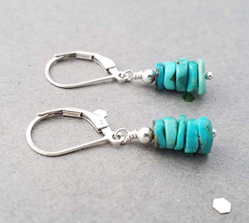 Five natural Turquoise beads hang from each sterling silver leverback earwire. Never worry about your earrings falling out again! Leverbacks keep your earrings on securely by creating a closed loop. No more tiny rubber stoppers to lose or fiddle with!