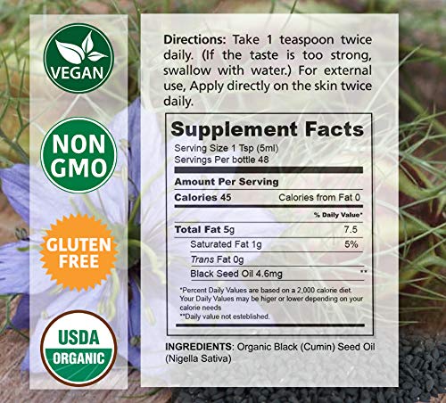 Many manufacturers claim to have a USDA Certified organic black seed oil. We strongly suggest asking for the USDA Certification. We are proud to show you ours in one of the images on top of this page.