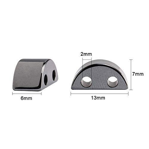 - ❤ TWO HOLE -- So many new possibility's for your designs with two-hole hematite beads. This hematite bead offers a half round shape that widens between the two holes and tapers at the ends of the bead.