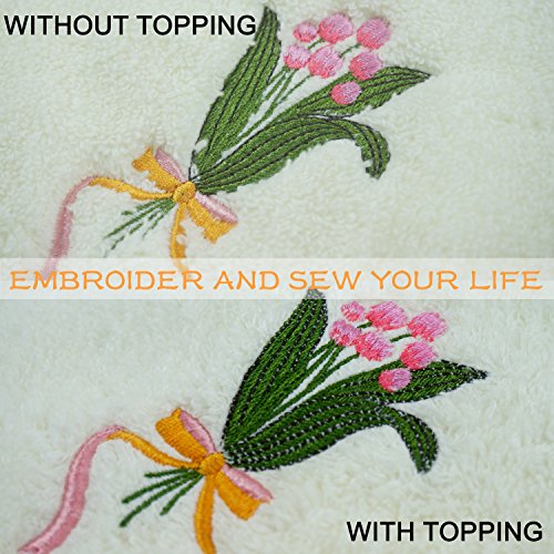 - ▶USED AS TOPPING FOR FLUFFY FABRIC: Our water soluble embroidery topping film is best used on the top of high pile fabrics, towels, velvet, corduroy, terry cloth, sweater, fleece and other fluffy fabrics. Greatly help in preventing embroidery stitches from sinking in these fabrics.