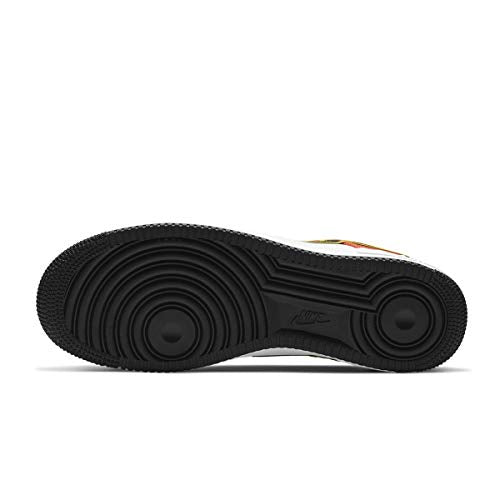 Details: The Nike Air Force 1 Low ‘Roswell Raygun’ brings back a beloved design motif originally featured on the 2005 Nike SB Dunk of the same name. That shoe took inspiration from a 2002 Nike Basketball campaign centered around a fictional ABA team known as the Roswell Rayguns, whose signature hues are utilized on this Air Force 1. The low-top features a white leather upper accented with a satiny heel overlay in Orange Flash. The same textile is used on the yellow heel tab, while the Swoosh is rendered in a black twill material outlined in yellow. An embroidered basketball graphic adorns the lateral heel.