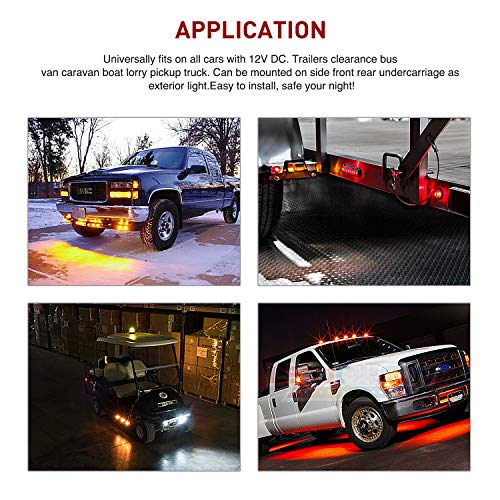 - Wide Application: Universally fits on all cars with 12V DC Trailers clearance bus van caravan, boat lorry pickup truck, etc. Can be mounted on the side front, rear undercarriage function as clearance, side marker, turn signal light or light trailer