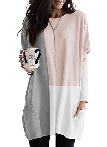 - Eyecatching Look-oversized women's color block tunic tops, round neck pullover/long sleeve tunic tops for women/womens tunics to wear with leggings/color block tunic for women/womens basic long sleeve sweatshirt