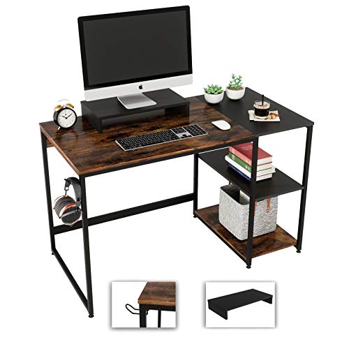 【Reversible & Flexible Storage Shelves】The 2 tiers open shelves of our rustic desk can be assembled on the left or right. The middle shelf is 3 height adjustable and removable. The flexibility allows us to store different size things like computer host, books, office stationaries and small devices.