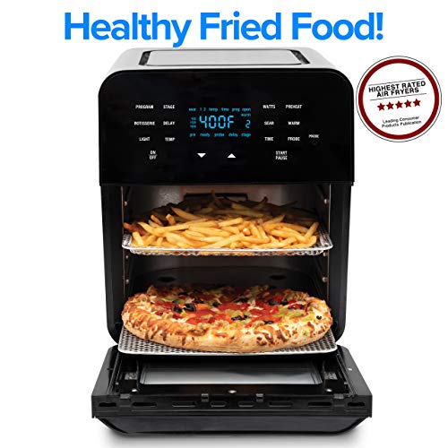 - EVERY MEAL, EVERY DAY- The BRIOs cooking technology and large capacity means you can use it for virtually every meal of the day, and dessert! With a cooking range from 100F to 400F degrees you can air fry, broil, roast, grill, sear, bake, reheat and even dehydrate… all in one appliance right on your countertop. And with 100 preprogrammed presets and the ability to store more of your own, meals are done with just the press of a button.
