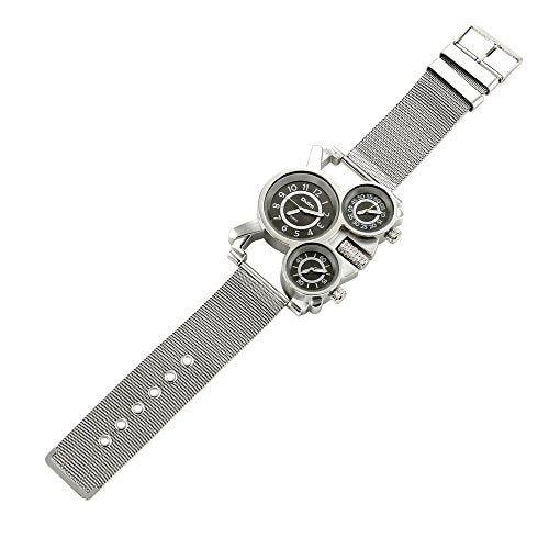 Details: Want to take your sense of style to the next level? This trendy and uniquely designed 3 time-zone display quartz movement watch with metal wrist band is guaranteed to be a talking point wherever you go. Made of high quality alloy and metal material with mineral harden glass, this watch is anti- corrosion, anti-scratch, and provides some water proof protection such as from sweat and rain. (Not for swimming, diving, or showering) It is an ideal gift for your loved ones for any occasions such as Christmas, birthdays, anniversaries, father’s day, Valentine’s day, etc, or when you simply want to spoil yourself with something new and trendy. Order this stainless steel watch now and be trendy and on time!.