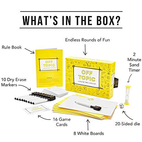 - CREATIVITY RULES: Off Topic is a fun board game that gets the brain juices flowin’ and stirs up some hilarious conversations during friends and family game night.