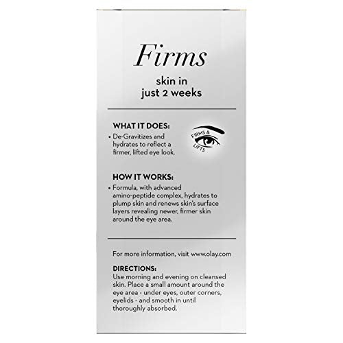 Details: Don’t blink or you’ll miss how fast Olay Eyes Eye Lifting Serum for visibly lifted firm eyes smoothes and brightens skin around eyes. It instantly plumps the overall eye area with hydration and reduces the appearance of under eyes bags with every use. It de-gravitizes sagging skin on eyelids and around the eyes to reflect a firmer, lifted-eye look. With an advanced Amino-Peptide and vitamin complex, this eye serum’s velvety formula aids in surface skin turnover. Plus, it hydrates to visibly lift and smooth corners revealing firmer skin around the eye area. The fragrance-free formula is non-greasy, so it quickly absorbs into the surface of the skin. Retire your tired eyes and boost your outlook with the Eye Lifting Serum for visibly lifted firm eyes.