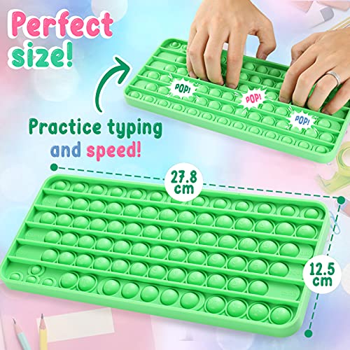 - ✔️ ITS A KID-SAFE & EDUCATIONAL PUSH POP FIDGET TOY - Made with child-friendly and quality silicone. Easy to clean, carry or store, and not fragile. It's a road trip essential when going out with toddler kids to keep them busy while on a plane or airplane, bus, or car ride. With embossed letters on the bubble, it's like typing on a keyboard! A fun learning toy for daycare, nursery, calm down corner, or homeschooling supplies.