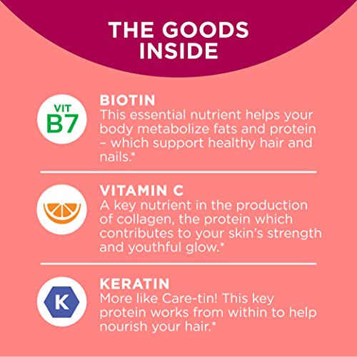 - OLLY UNDENIABLE BEAUTY GUMMY: Delicious grapefruit flavored gummy supplements to support your naturally gorgeous hair, skin and nails. Biotin, vitamin C, and keratin pair up to support healthy looking hair, and nourished looking nails and skin*