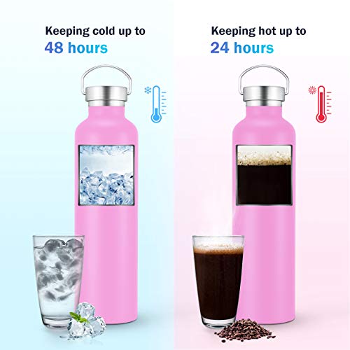 - Vacuum Insulated Water Bottle: Featured dual walls, premium coated copper on the exterior of the inner wall. High performance temperature retention, keep liquid hot up to 24 hrs and cold up to 48 hrs, NOTE:Please choose the stainless steel cap to get a better experience .stay your drinks ice cold for a long time and keeps hot drinks super hot.