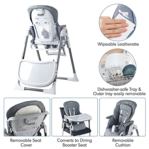 - ❤7 IN 1 Convertible High Chair: The highchair that grows with your child from infant to toddler and converts to a booster when your child is ready, help babies build confidence as they learn to feed themselves and participate in family mealtime, portable design fits on most dining chairs so your little foodie can sit in style wherever you go