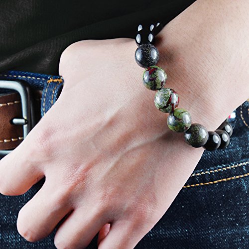 - Features premium dragon blood jasper, black tourmaline, heavy duty elastic cord, and permanent magnetic clasp