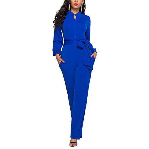- Features: Solid Color, Long Sleeve, Stand Collar, Button Up, Belt, Wide Leg, Straight Leg, Pockets, One Piece Jumpsuit