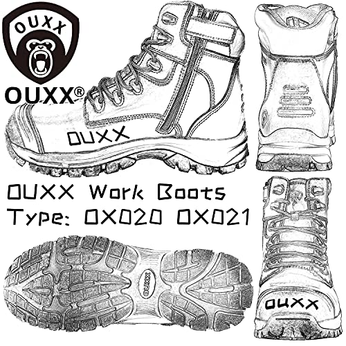 Details: OUXX developed boots to combine stylish boots and steel toe work shoes with improved comfort and durability. These are suitable to match your outfit in daily or work. ✔ Steel Toe - Safety & Anti-smash ✔ Nubuck Leather - Durable & Splashing Resistant ✔ Mesh Lining - Soft & Breathable ✔ EVA+Rubber Sole - Puncture Proof & Non-slip Size Chart: Men 6.5 US =25.7 cm =10.12'' Men 7 US =26.1 cm =10.28'' Men 7.5 US =26.5 cm =10.43'' Men 8 US =26.9 cm =10.59'' Men 8.5 US =27.4 cm =10.79'' Men 9 US =27.8 cm =10.94'' Men 9.5 US =28.2 cm =11.1'' Men 10 US =28.6 cm =11.26'' Men 10.5 US =29.1 cm =11.46'' Men 11 US =29.5 cm =11.61'' Men 11.5 US =29.9 cm =11.77'' Men 12 US =30.3 cm =11.93'' Men 12.5 US =30.8 cm =12.13'' Please follow the size chart to chooes your size.