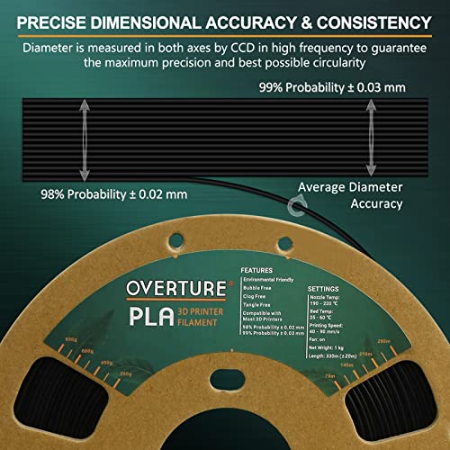 - [Dimensional Accuracy & Consistency]-- advanced CCD diameter measuring and self-adaptive control system in the manufacturing guarantee these PLA filaments of 1.75 mm diameter, Accuracy +/- 0.03 mm; 1 kg spool (2.2lbs)