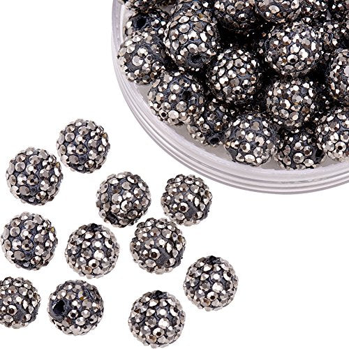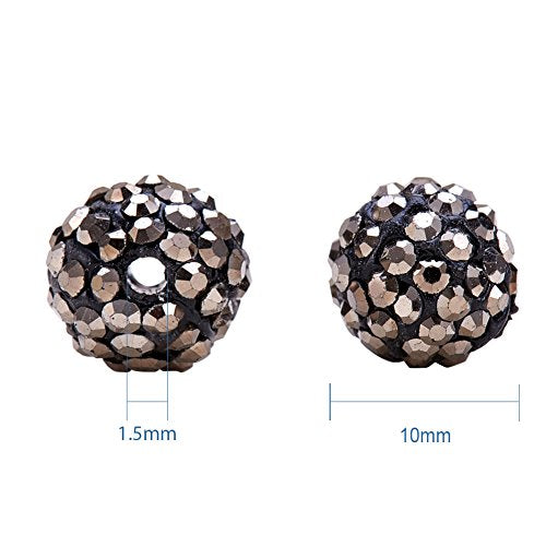 Details: Pave Disco Ball Beads, Polymer Clay Rhinestone Beads, Round, Hematite Size: about 10mm in diameter, hole: 1.5mm. Charming beads with sparking rhinestone that add excellent light reflection and additional flash to jewelry designs. Durable and economically priced, great for bracelet designs, craft projects, home decoration and more.