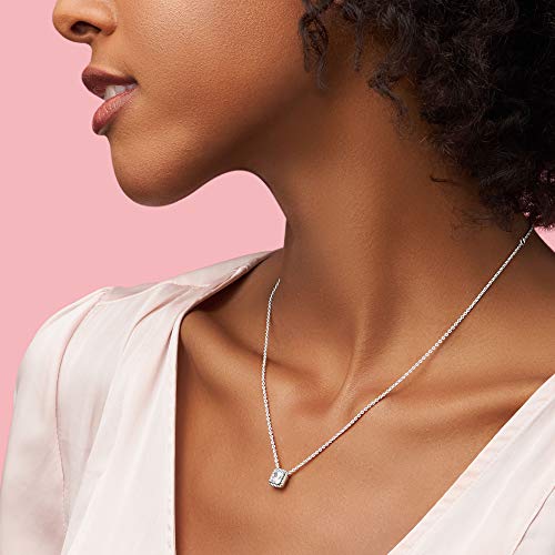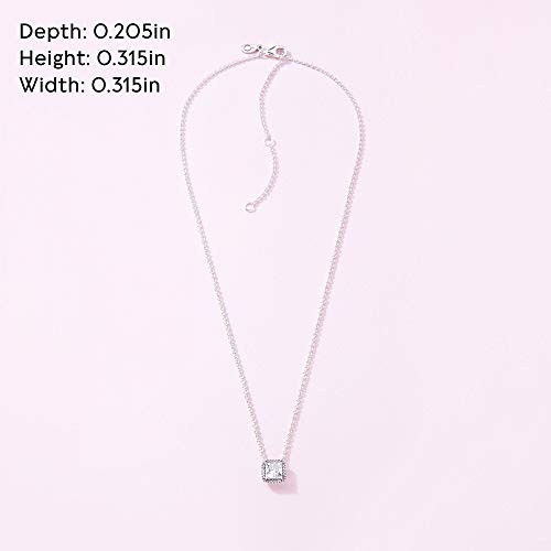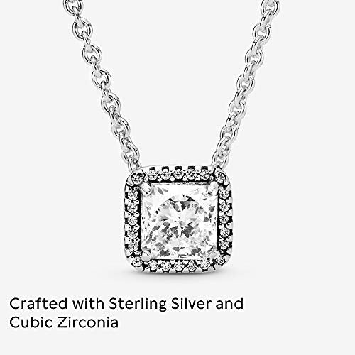 - Timeless Elegance: Captivate with this exquisite sterling silver halo necklace featuring a square-cut cubic zirconia centerpiece. Its timeless expression and elegant collar length will flatter any neckline.