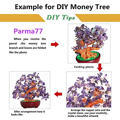 Details: You need to arrange the branch and leaves with patience.It will looks more Beautiful. It can be gift for family and friends. · Made of resin and crytal stone,Leaves and branches can be arranged how you like · It's about 7" tall ; width diameter is about 6.3" · Great design, natural purple crystal comes from Money Tree for wealth Luck. The Money Tree is " Choi" means "Wealth" "Luck" The best place to put the item is your living room and the table of your office · Crystal Money Tree is a powerful tree of abundance. It will help you attract wealth and prosperity, success, and all good things. Place it in their living room to bring you money luck. It is also said to improve career luck as well as an excellent Feng Shui Figurine for those who are in managerial positions·