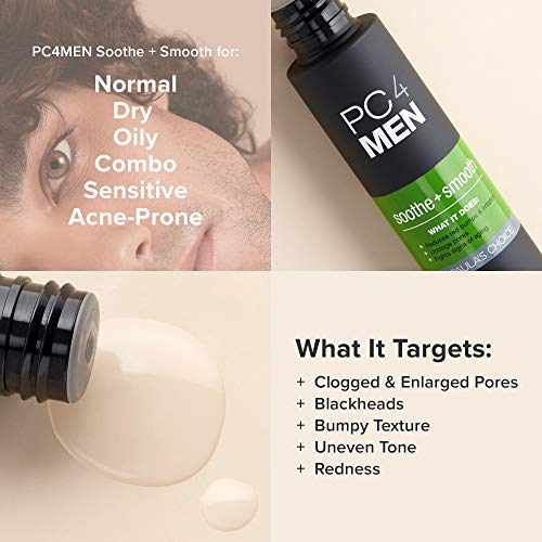 - SOOTHE AND SMOOTH: PC4MEN Soothe + Smooth is like no other after-shave you’ve ever used; it's gentle and fragrance free, yet delivers dramatic results with its combination of potent exfoliating and anti-aging ingredients.