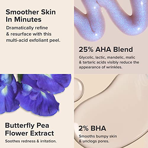 - CONCENTRATED 25% AHA BLEND & 2% BHA: Alpha hydroxy acid blend smooths wrinkles & refines rough bumpy texture while salicylic acid unclogs, decongests and minimizes large pores & blackheads.