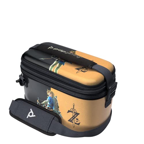 Details: The Hyrule Hero Link Pull-N-Go Case for Nintendo Switch is 2-in-1 for more fun! Pack your entire system inside or pull off the attached Slim Travel Case for on-the-go gaming sessions. The compact, yet functional design makes this carrying case the ultimate travel companion for any Nintendo Switch gamer. The Pull-N-Go Case fits a Nintendo Switch and Nintendo Switch Lite console, the console dock, Pro Controllers, AC adapter, HDMI cords, extra Joy-Con controllers, a power bank, game cards, and other small accessories. Protect and play with the top Slim Travel Case featuring a built-in console stand for on-the-go gaming. Customize the case with the interchangeable accessory dividers so you can store what you need, how you need it. The semi hard-shell construction makes it durable and lightweight, even with all your gaming gear inside!