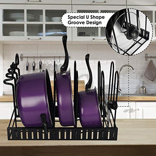 - √[ Adjustable Tiers ]: This pan rack organizer comes with eight adjustable tiers allowing you to install the pan organizer according to the size of your pots and pans. Regardless of the size of your pots, they will fit with ease into this pot organizer.