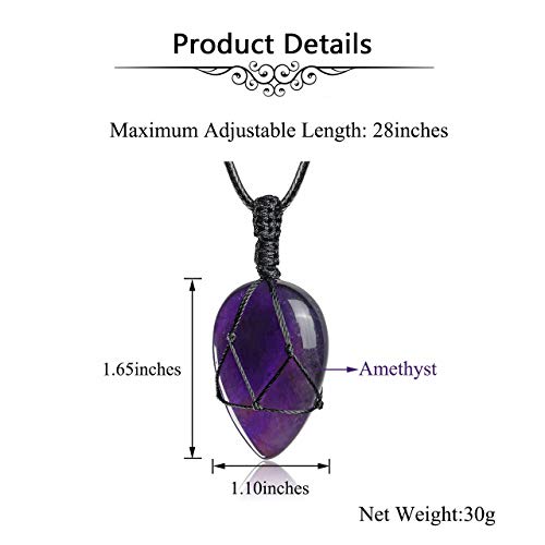 - ♥COMFORTABLE TO WEAR:Made with the highest quality 28" wax cord necklace and polished beautiful 42*28mm(LxW) precious natural amethyst teardrop pointed pendant,Smooth, Good for sensitive skin. Package Content: 1x Pendant, 1x wax cord,1x free bag !