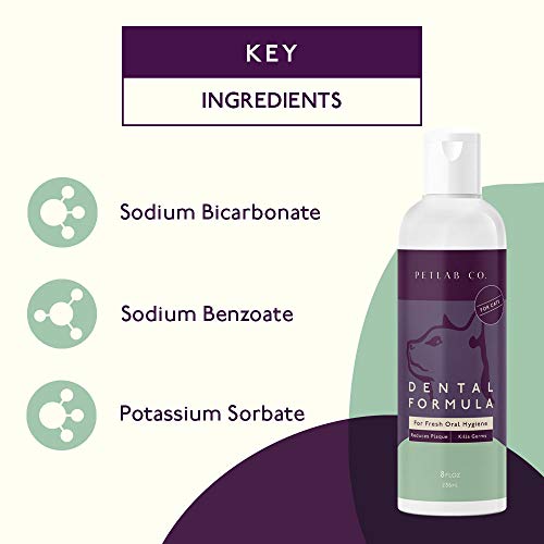 Details: Cat dental care is incredibly important and unfortunately some owners still neglect cat teeth cleaning which can then cause more serious long term dental issues. It is vital to address cat oral care and to also maintain good hygiene over time. The issue of dental care itself is what inspired the Petlab dental wash. Our dental wash is an effective product that is completely tasteless, odourless, and easy to use. We have designed our cat dental wash to be as simple to use as possible; all you need to do is add our wash to your cat's water. Please make sure you follow the directions for use as outlined on our product label. Our wash is also able to support the health of your cat’s gums. A few key ingredients in our wash worthy of noting are, sodium benzoate - which counters build up of bacteria, sodium bicarbonate (also known as baking soda) - this powerful ingredient is well known in toothpaste to scrub both tartar and plaque, and finally potassium sorbate - which supports bone mineral density of cat’s teeth while helping to maintain healthy gums.