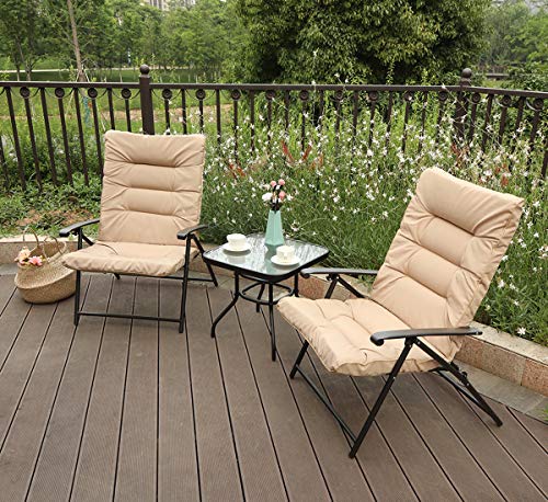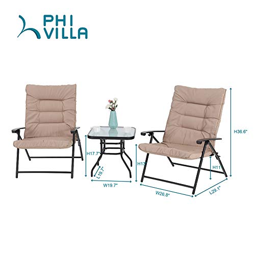 PHI VILLA 3 PC conversation cushion sets perfectly create the mood for great conversation and cafe-style dining. The ideal choice for outdoors amusement, such as garden, porch or yard. This 3-piece bistro set will make a lovely relaxing environment where you can catch up with friends or family over coffee or wine. All materials are treated to resist weather, rust and fading throughout the year.