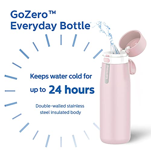 Details: Philips GoZero Daily Insulated Stainless Steel Water Bottle with Filter, designed with Philips filter that fits in the straw to Filter Tap Water into Fresh-tasting Water