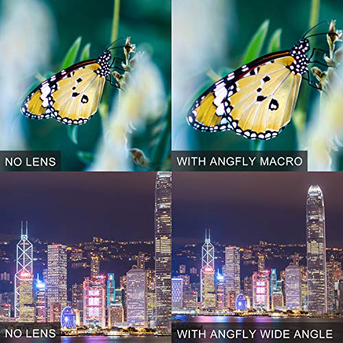 - ✔ EXPAND YOUR VIEW AND NO DARK CORNERS : The ANGFLY Wide is rated the highest quality attachment lens on the market.This wide angle lens captures 2x more picture with a multi-element glass design that provides edge to edge clarity. Our lenses are custom made with five layers of cinema quality glass and aerospace metal.Ideal for shoot stunning photos of people, pets, travel scenery, architecture and selfies.