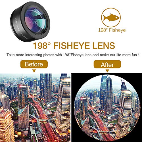 - 【3 in 1 Phone Camera Lens Kit】: Leknes New Upgraded cell phone lens kits includes 120°Wide Angle Lens +198°Fisheye Lens + Macro Lens. With the 120°Wide Angle, it can help largely expand the field of view and enable you to capture the entire family or a whole team member into one picture;Fisheye Lens create funny circular pictures, make you fall in love with photography; macro lens lets you see the world around you closer than ever before! Meet your daily photography demands.
