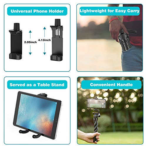 - Lightweight and Versatile Handheld Tripod - Great choice for vlogger on the go! The camera tripod stand weights only 260g and 28cm tall. It’s portable and easily packed in your pocket or briefcase. Equipped with superior flexible legs, it can even be used as a iPad or tablet stand for occasional private photos. What You Will Get - 1x Flexible Phone Tripod , 1x Universal Phone Clip, 1* Wireless Remote.