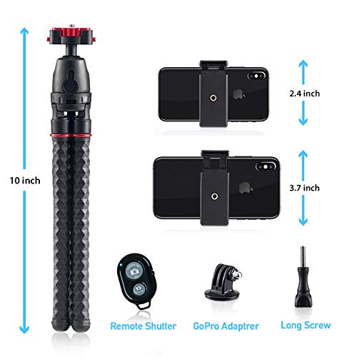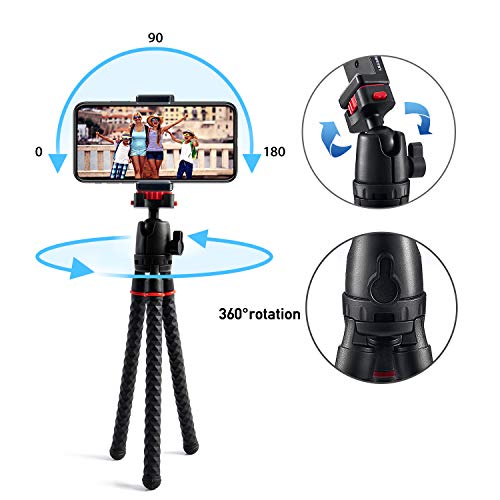 - ✔️Multi-Angle Shots - 360 degree swivel ball joint and adjustable OCTOPUS tripod legs help to capture clean shots from multi-angle, It can hold your Device in both portrait and vertical mode. Easy application and precise positioning with 360 °panning, to expand the range of shots.