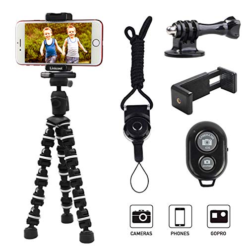 Details: Feature: Linkcool Flexible Octopus Phone Tripod for Most Phones and Cameras Perfect for Travel Wonderful memories come from your photos. If you want to record the world in different way, the octopus phone tripod can provide different angle to you. Put it into your backpack, you can take interesting images everywhere. Flexible Legs As you can imagine, the phone tripod can be placed on many places. You can bend the legs to make kinds of shapes, for example, you can wrap the legs on tree branches, poles, desk, computer screen or anywhere you can imagine. Universal Phone Holder Phone holder fits most cellphone(width between 2.2 inch to 3.3 inch), such as for iPhone 7/ 5/6s/6s plus, for Samsung Galaxy S7/S6, for Note 5/4/3 and other android smartphones. Bluetooth Remote Everybody will stay in the photos because no one need to hold the camera. It is the essential accessory of your tripod, you can catch the important moments with all your friends. The range you can use the bluetooth remote is 30 feet. How to use the bluetooth remote 1.Turn on the on/off button on the remote,the remote will enter the matching mode and the LED will flash quickly at the same time. 2.Open your bluetooth function on your phone and remember to open the function that can be searched. 3.Select the device of the bluetooth remote from the list,and wait for few seconds they will match automatically. 4.There are two button on the remote,one for iOS ,and another for Android.No matter you want to take photos or record video,both are OK. Standard Cameras Interface Universal 1/4"screw. Standard screw ensure your camera is safely attached. Package include: 1 x Flexible Octopus Tripod 1 x Universal Clip 1 x Bluetooth Remote 1 x Exquisite Lanyard