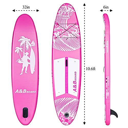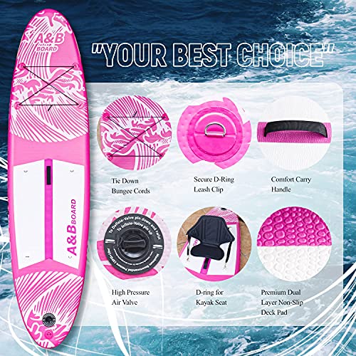 - Premium and Safety Commercial Grade Material: The Inflatable paddle board is made of Double-Wall Material and durable commercial grade PVC tarpaulin. The excellent PVC Sewing Material protects the Inflatable Paddle Board from being damage. The thickened non-skid EVA pad makes it easy to maintain stable and safe navigation. The special pink color design makes you feel closer to nature