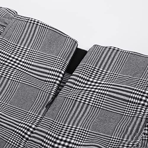 - Features: Plaid mini skirt, elastic high waist bodycon skirt, side ruched, hidden zipper in the back. This mini skirt is well elastic and mid-thigh length.