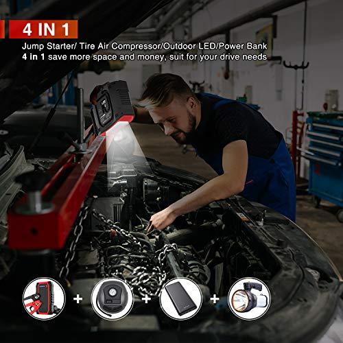 - ๐ 2 LCD Screen & 5W Emergency Light: Different from other jump starter, Utrai car starter come with 2 LCD, data of the starter and air compressor can be read directly. The 5W Emergency light is more powerful to be used anywhere anytime.