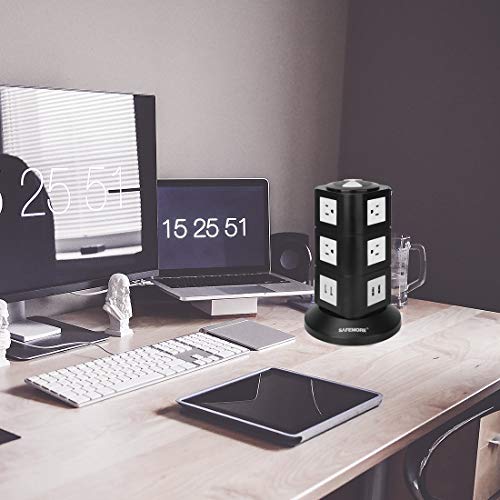 - Safety Guarantee and Surge Protection:Built with Fireproof ABS Plastic and PVC copper cable Overload protector and Surge protector provide reliable protection for your PCs, laptops, printers, and other small home appliance-Lighted on/off switch with integrated circuit breaker for overload protection. 6-foot heavy duty power cord allows for almost anywhere the surge protector is needed