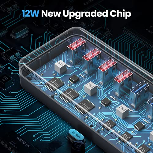 - 4 Fast-Charging Ports: Offer additional 4 Smart-Charging Ports, you can charge your tablets, cameras, and phones without having to find extra wall outlet space. With the 12V/3A power adapter, This USB powered 3.0 hub can deliver the fastest possible charge of up to 2.4 amps per port.
