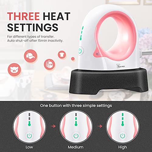 - Flexibility in use: This Mini Heat Press Machine can do small vinyl projects easily and quickly. The one-hand operate design makes it convenient in either doing the T-shirt project on the table or decorating shoes by holding them in hand.