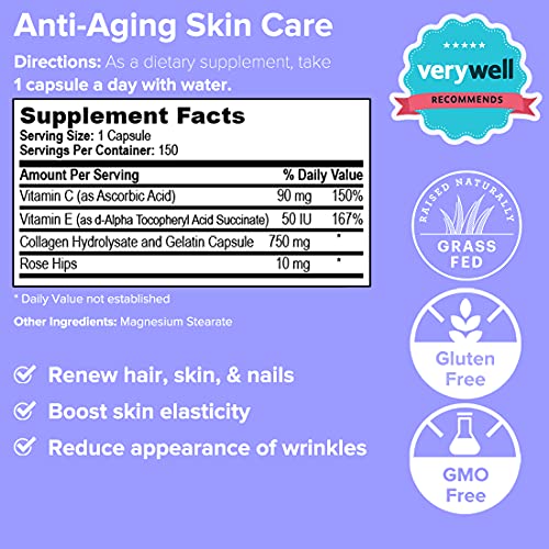 - Anti Aging Skin Elasticity Boost: Our pasture raised, grass-fed collagen protein pills greatly supports collagen regeneration which stimulates your body to effectively renew tissues, helping you maintain a radiant youthful skin complexion. Comes in a conveniently small capsule form.