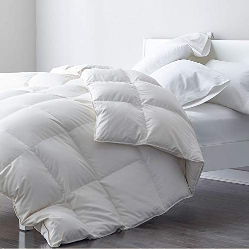 Details: Snuggly and warm, a well-chosen goose down feather comforter will keep you cozy and deep sleep. DWR Premium Goose Down Comforter Duvet Insert is the best filling for bedding because the nature created materials that is ultra-lightweight and provides a consistent temperature year-round. FEATURES: 100% natural cotton shell. Softness, breathable, durable, skin-friendly. Premium responsibly-sourced white goose down feather filling. Pure nature, lightweight, warmth, fluffy, high cleanness, odorless, hypo-allergenic and earth-friendly. High quality with box-stitch quilting construction, 8 corner tabs, double stitched edge etc. Hypo-allergenic, Allergy Free. Safety certified by DOWNPASS and OEKO-TEX standard 100 etc. Use Guide: It's packaged in a vacuum bag, please spread it for a few hours or tumble in the dryer for 10 minutes at low temperature at first time use. Use in your favorite duvet cover or alone with a top sheet. Machine washable and dryable.