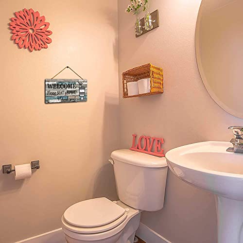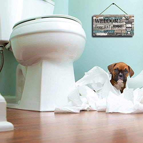 Details: High precision UV printing to realize bright color, lifelike graphics, water proof effect. The perfect sign is suitable for indoor and outdoor hanging. Comes ready to hang on wall with jute rope. Light weight wood, easy to see and nice looking. It will be a great gift for friends or families.Vintage style wood signs display nicely in your home & your friends home.1-year quality guarantee. If you are not totally satisfied with the quality or color, you can apply for return.Size: 11.5" x 6" Weight: Appro. 0.6lbs Material: Safe, environmentally and friendly plywood.Indoor/Outdoor approval. Usage: Bathroom. Each side was sprayed with white paint to keep it smooth and sting-less but retains its own natural variations in texture. Pallet look and design with weathered art adds charm and uniqueness to this home decor piece.