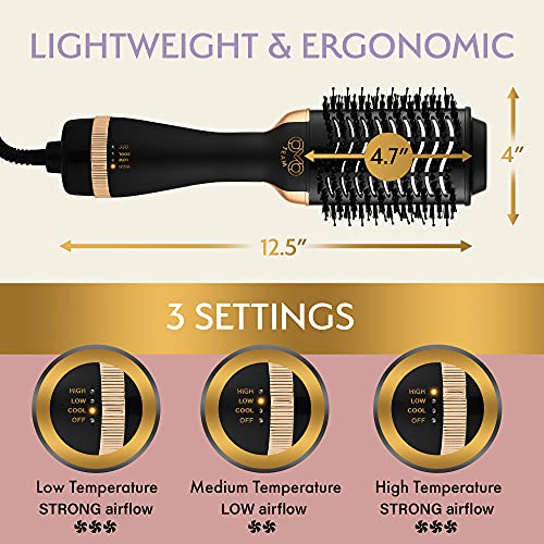 - ❤Our device has a Unique Oval Brush Design for smoothing the hair, while the Round Edges create Volume +3 Temperature Control with 2-speed settings to provide styling versatility and great results on all hair types.