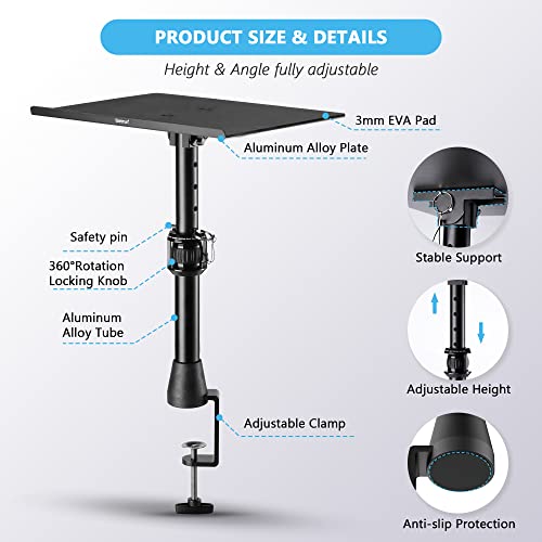 - [Adjustable height and tilt]: Height adjustable from 10’’ to 14.2’’, tray tilt angle adjustable from 0-20°, 360° rotating allow to place the sound towards your ears.